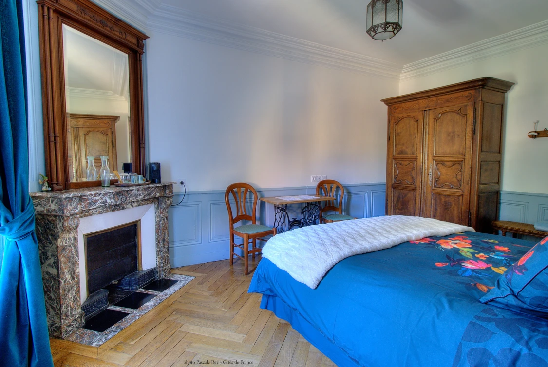 La Chambre d'hôtes "Églantine", située au 1er étage de la partie la plus récente de la maison construite fin 19ème siècle, a gardé son âme de la Belle Époque. En 1900, c’était la chambre de « Mademoiselle » et les Fayettes lui ont conservé son esprit romantique.